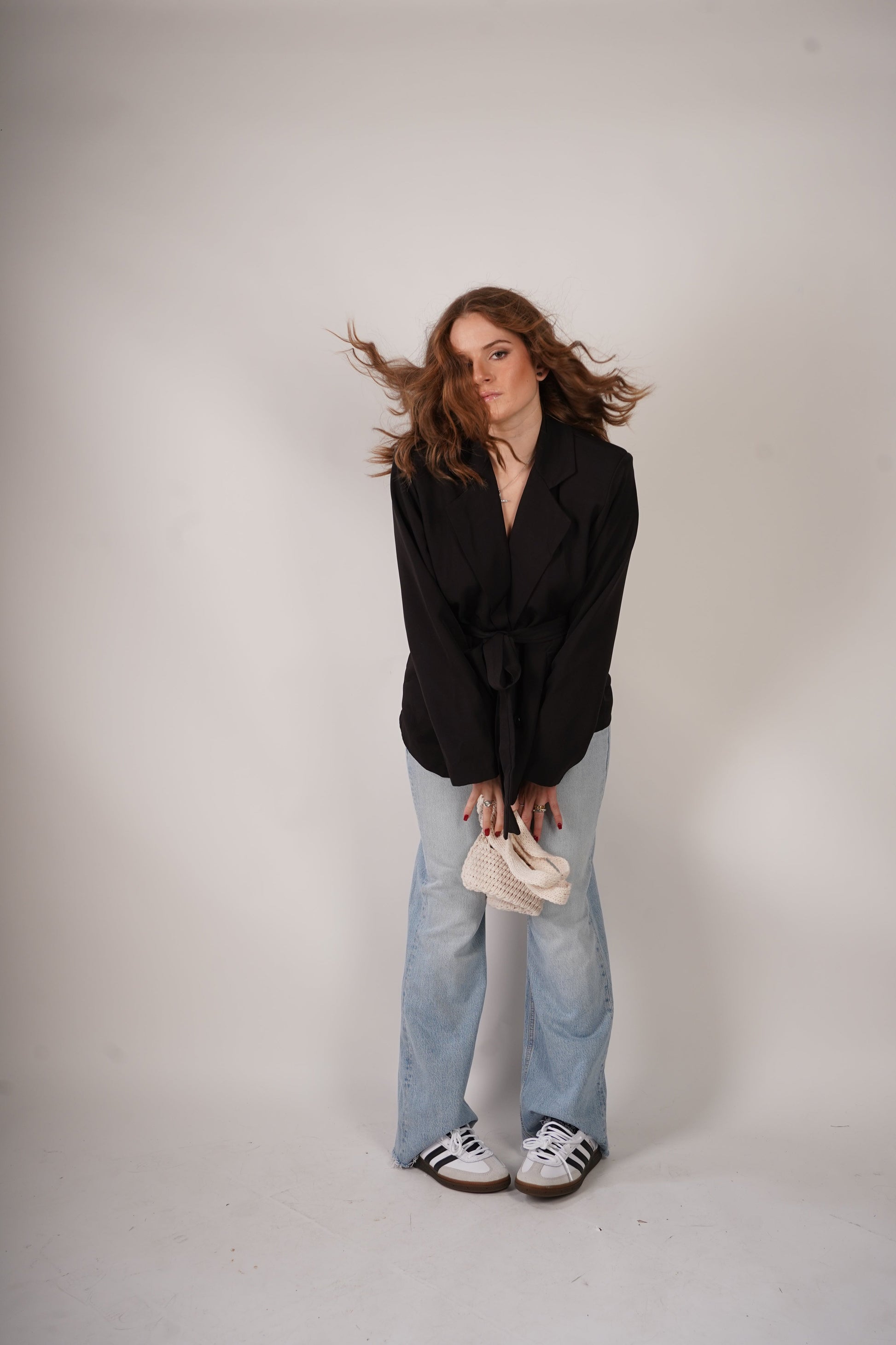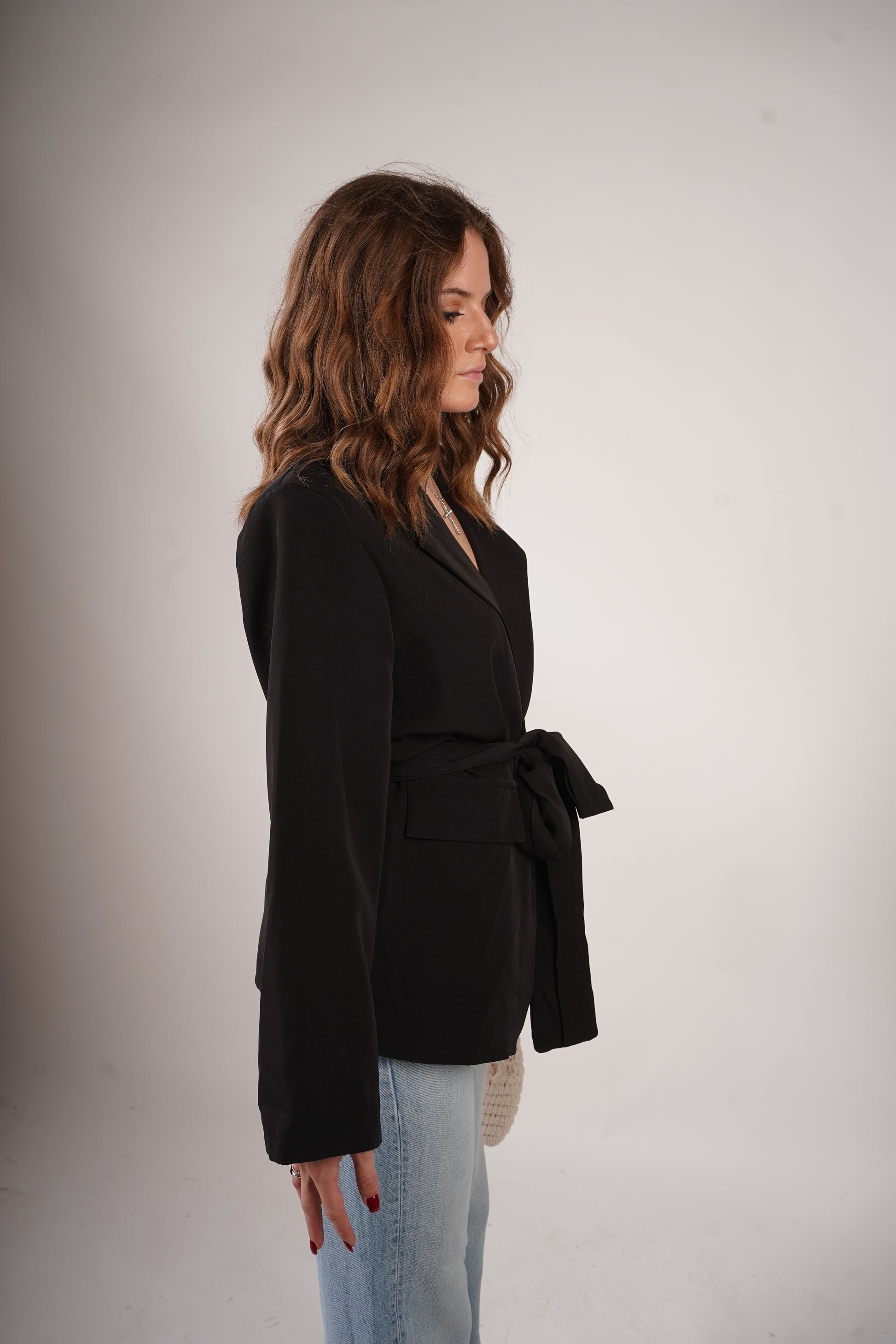 Giacca con spalline tessuto qualità, con una cintura in stoffa per la chiusura