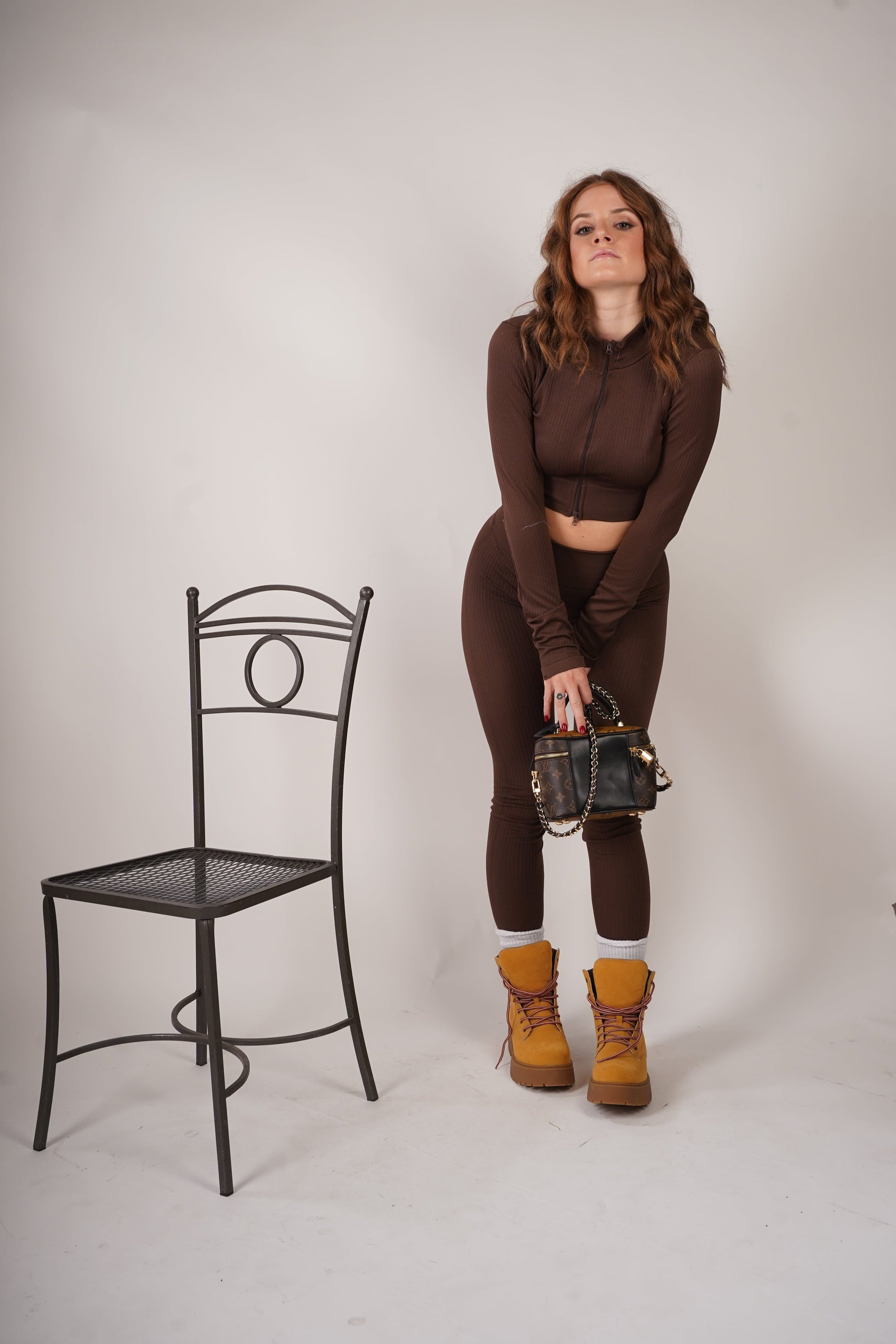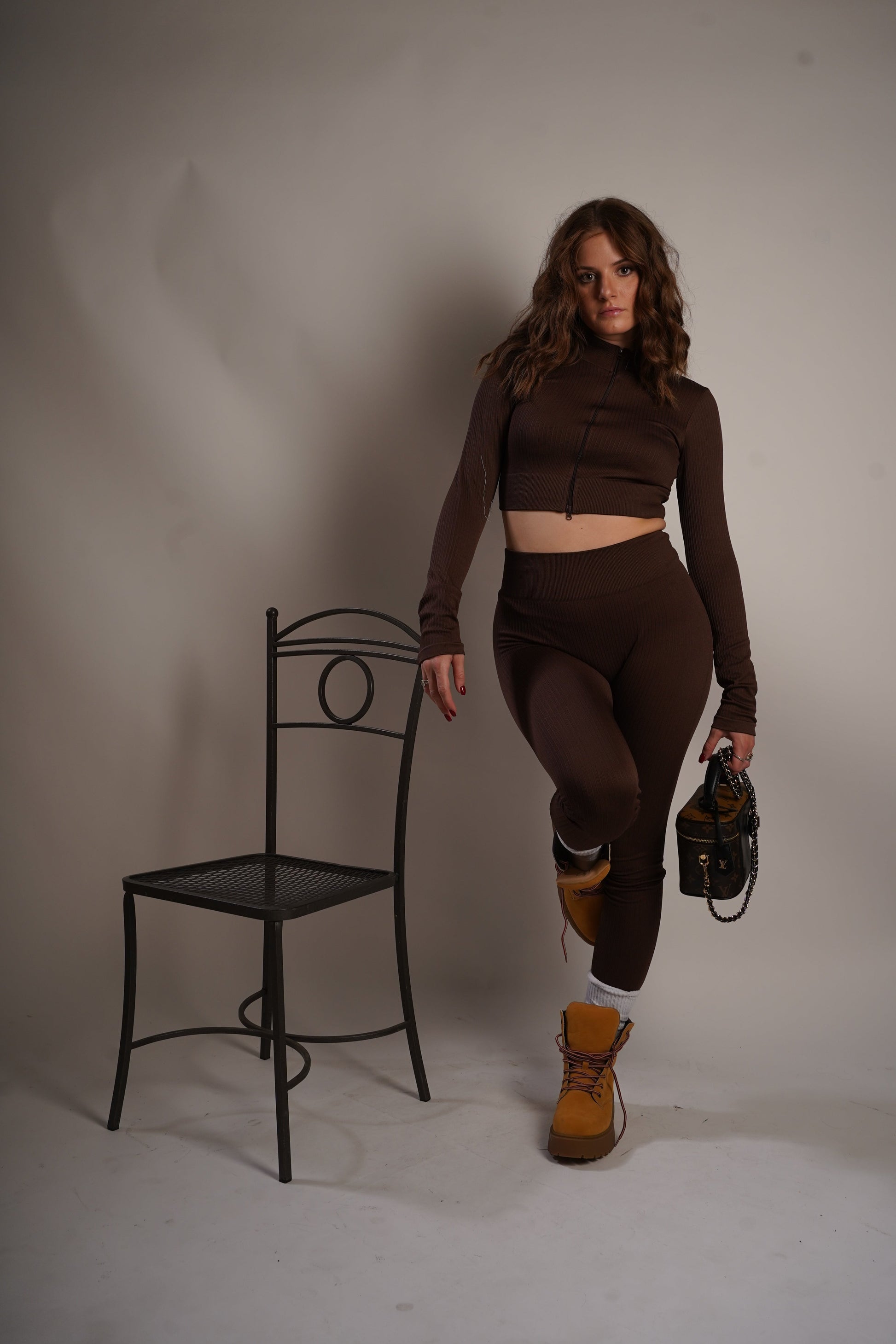 Coordinato composto da maglia maniche lunghe a costine e leggins a costine.