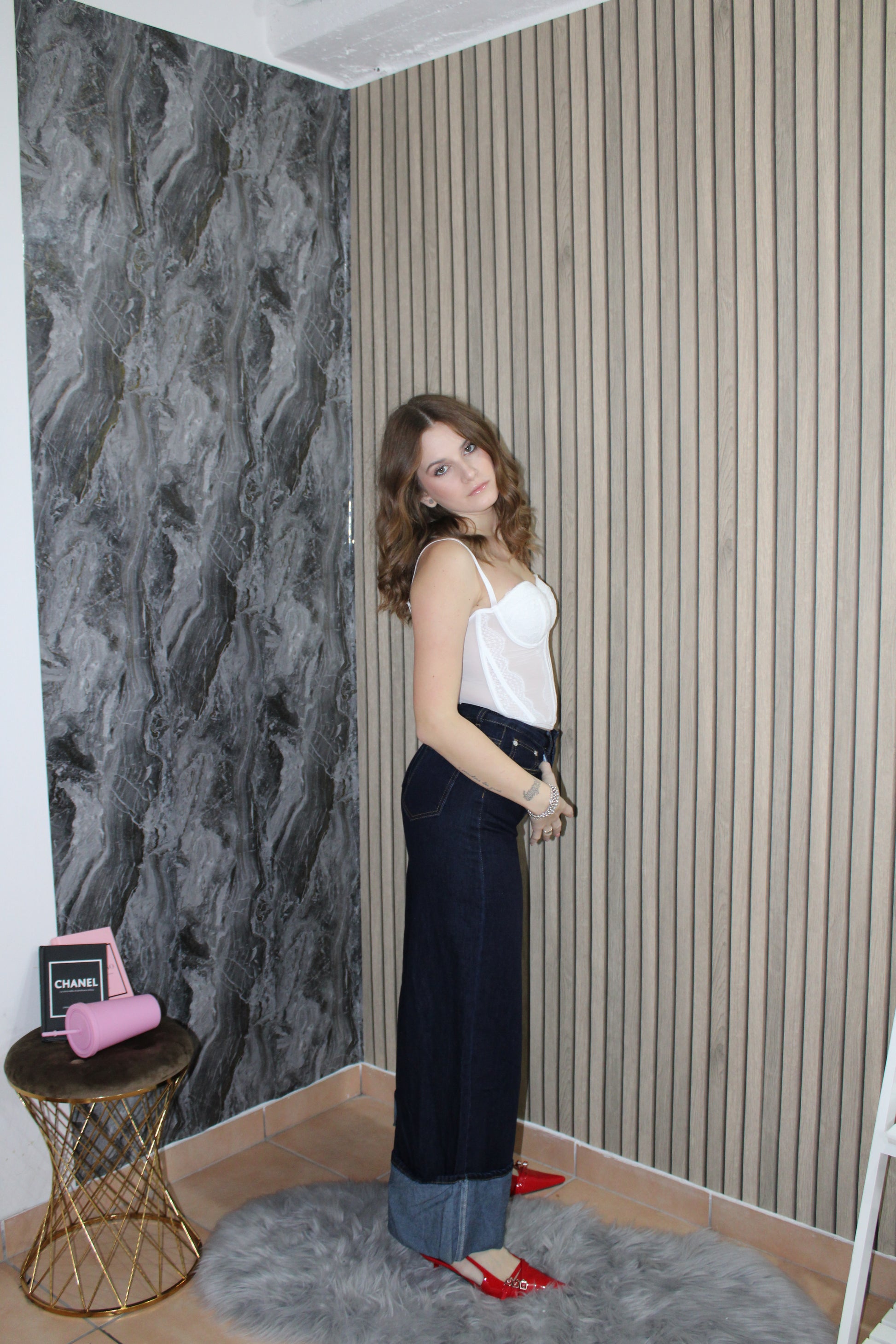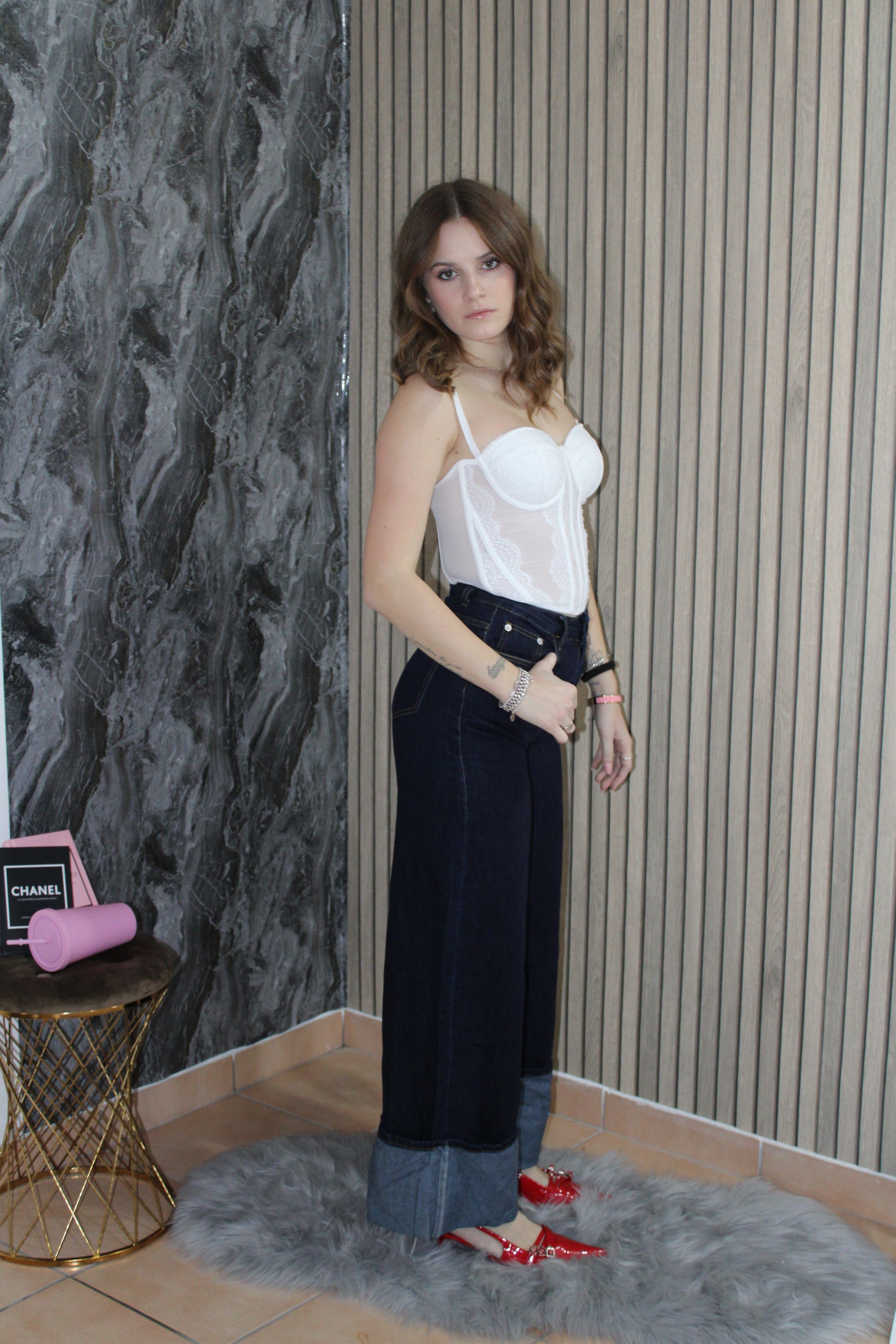 Corpetto in pizzo con spalline ,la modella insomma la S