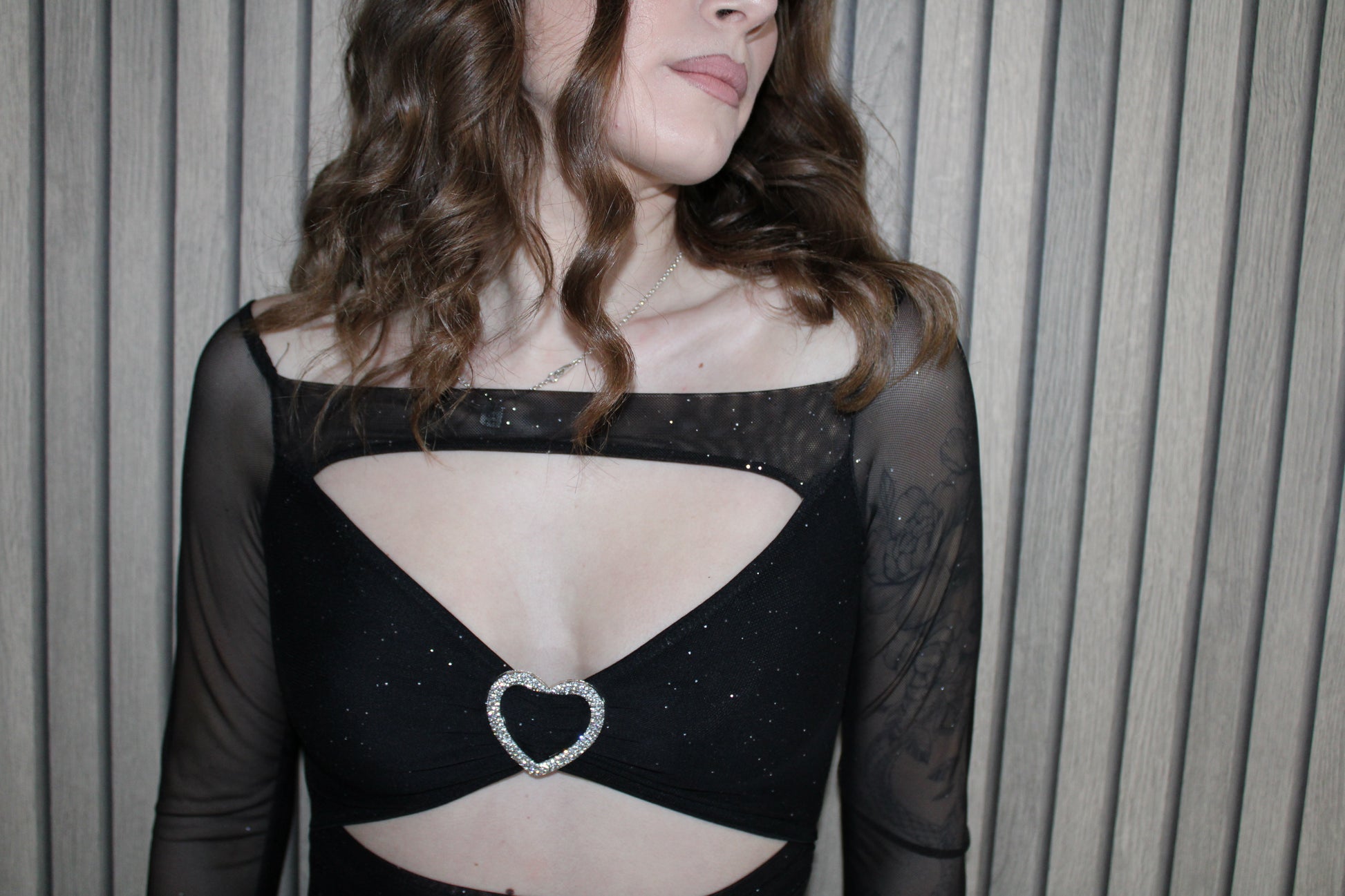 Mini abito con dettaglio cuore brillantinato.