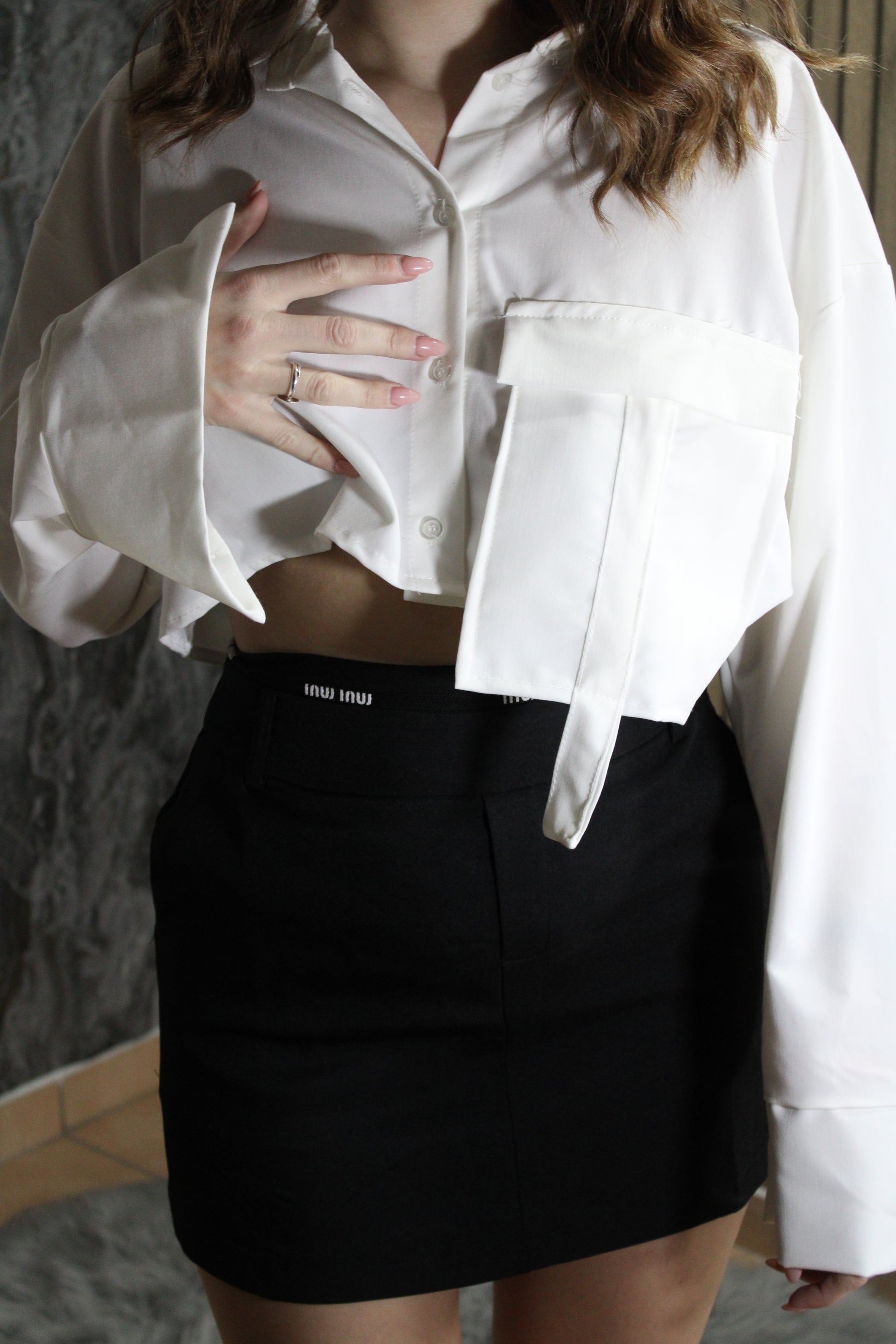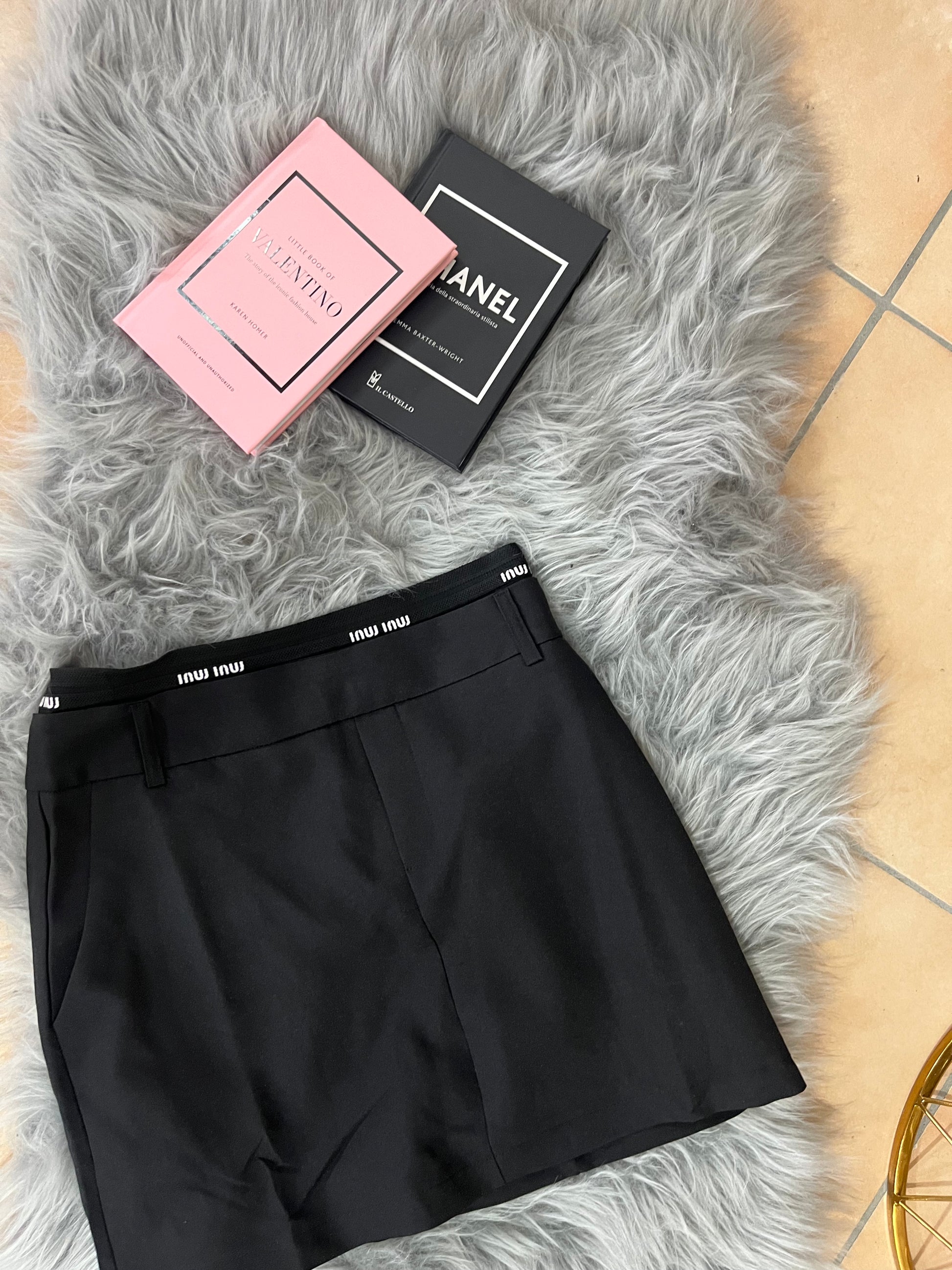 Minigonna con fascia e dettaglio scritta, è presente un pantaloncino incorporato